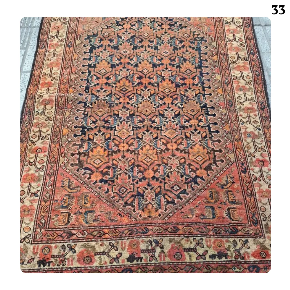 فرش اصیل ملایر یکی از نمونههای شاخص و ماندگار هنر دست ایرانی است که با طرحهای هندسی منظم و رنگهای طبیعی خود، روحی گرم و دلنشین به هر فضا میبخشد. این فرش دستباف با قدمتی بیش از ۹۰ سال، بازتابی از تاریخ و فرهنگ کهن منطقه ملایر است؛ جایی که بافندگان آن با صبر، ذوق و مهارت، تار و پود پشم دستریس را به اثری هنری و ماندگار تبدیل کردهاند. ابعاد حدودی این اثر ۱۱۰ در ۱۶۰ سانتیمتر است و با وزنی در حدود ۴ کیلوگرم، تعادل زیبایی میان ظرافت و دوام را بهخوبی حفظ کرده است.