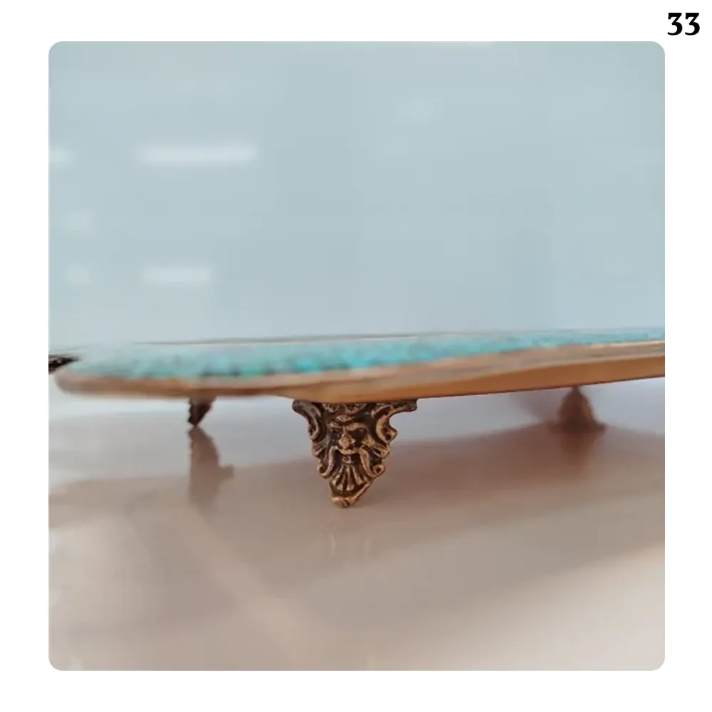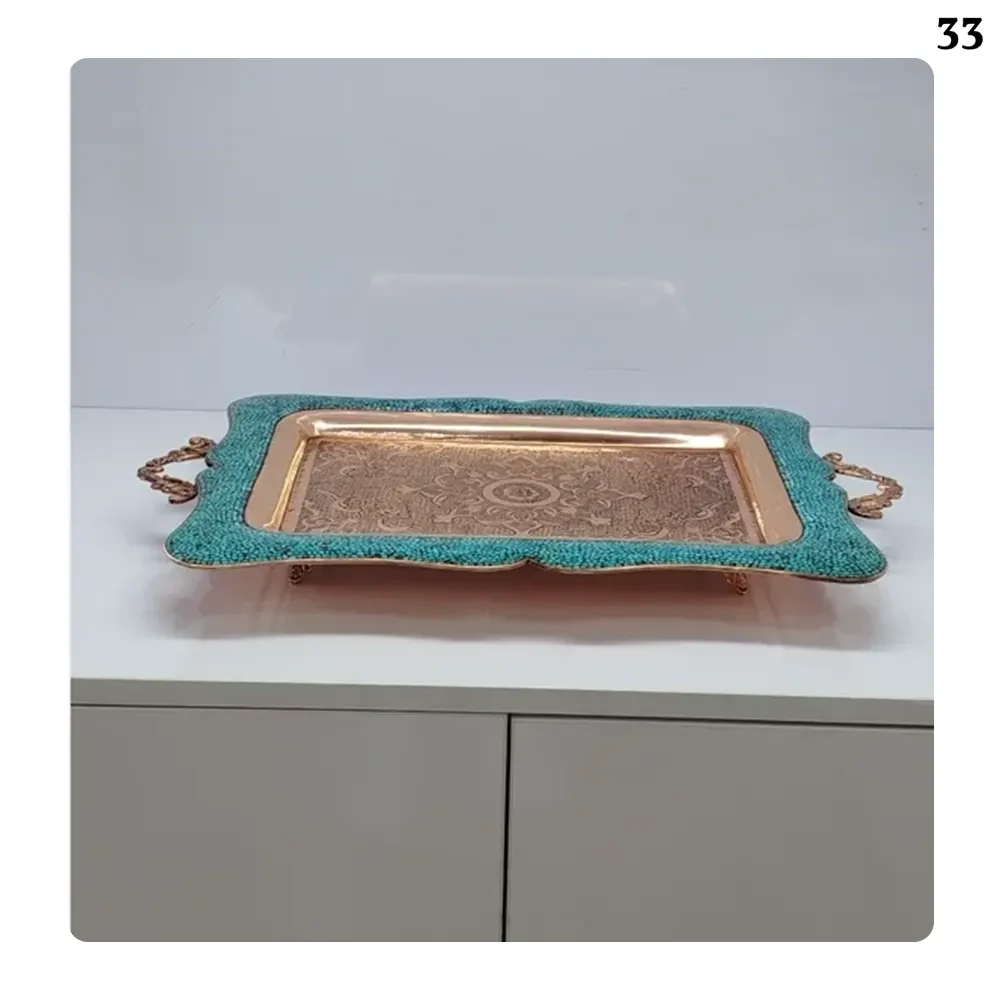 این سینی علاوه بر زیبایی خیرهکننده، از استحکام بالایی برخوردار است و میتواند در کنار جلوه تزئینی خود، در پذیرایی روزمره نیز مورد استفاده قرار گیرد. در طراحی لبهها و سطح آن، دقت بالایی به کار رفته تا علاوه بر ظرافت ظاهری، استفاده از آن نیز راحت و ایمن باشد. استفاده از سنگ فیروزه، نهتنها به دلیل رنگ دلنشین و اصالت ایرانی آن، بلکه به سبب ماندگاری و خاصیت مقاومت در برابر تغییرات محیطی، جلوهای پایدار و طبیعی به محصول میبخشد.
